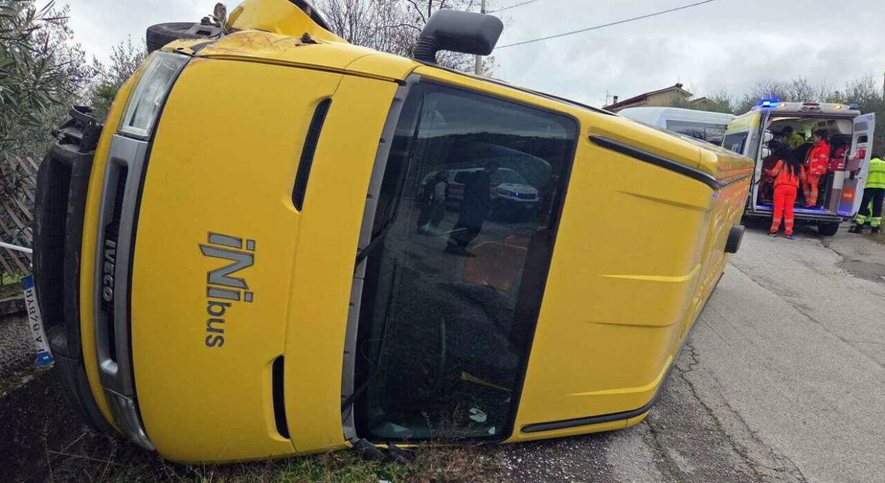 Il piccolo bus si è ribaltato in curva, molto probabilmente a causa dell'elevata velocità, alla fine di una discesa. E' successo nel comune in provincia di Frosinone