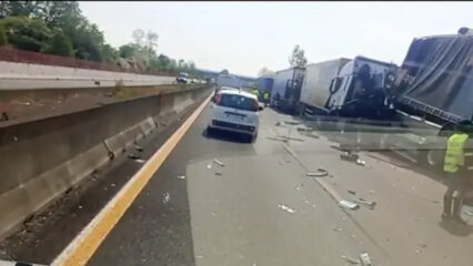 Inferno sulla A1 a Somaglia: maxi tamponamento tra 5 TIR